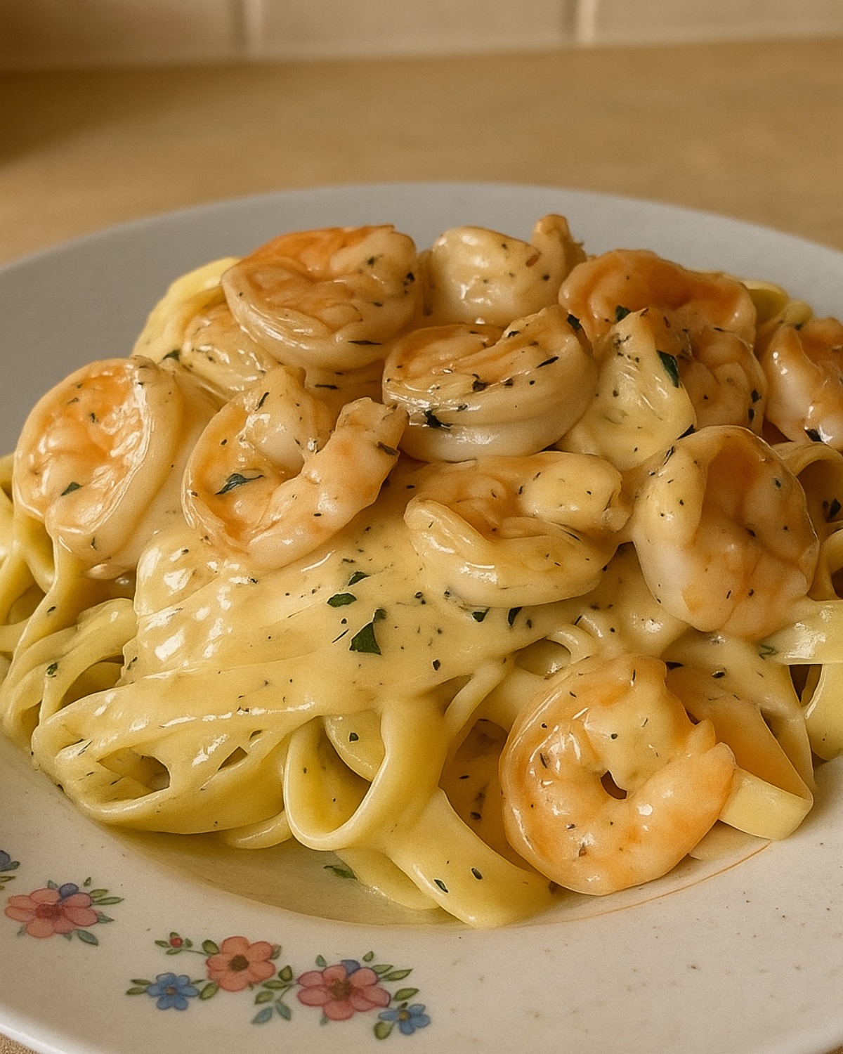 Pâtes aux Crevettes & Sauce Alfredo Légère : Beauté, Santé et Plaisir dans l’Assiette