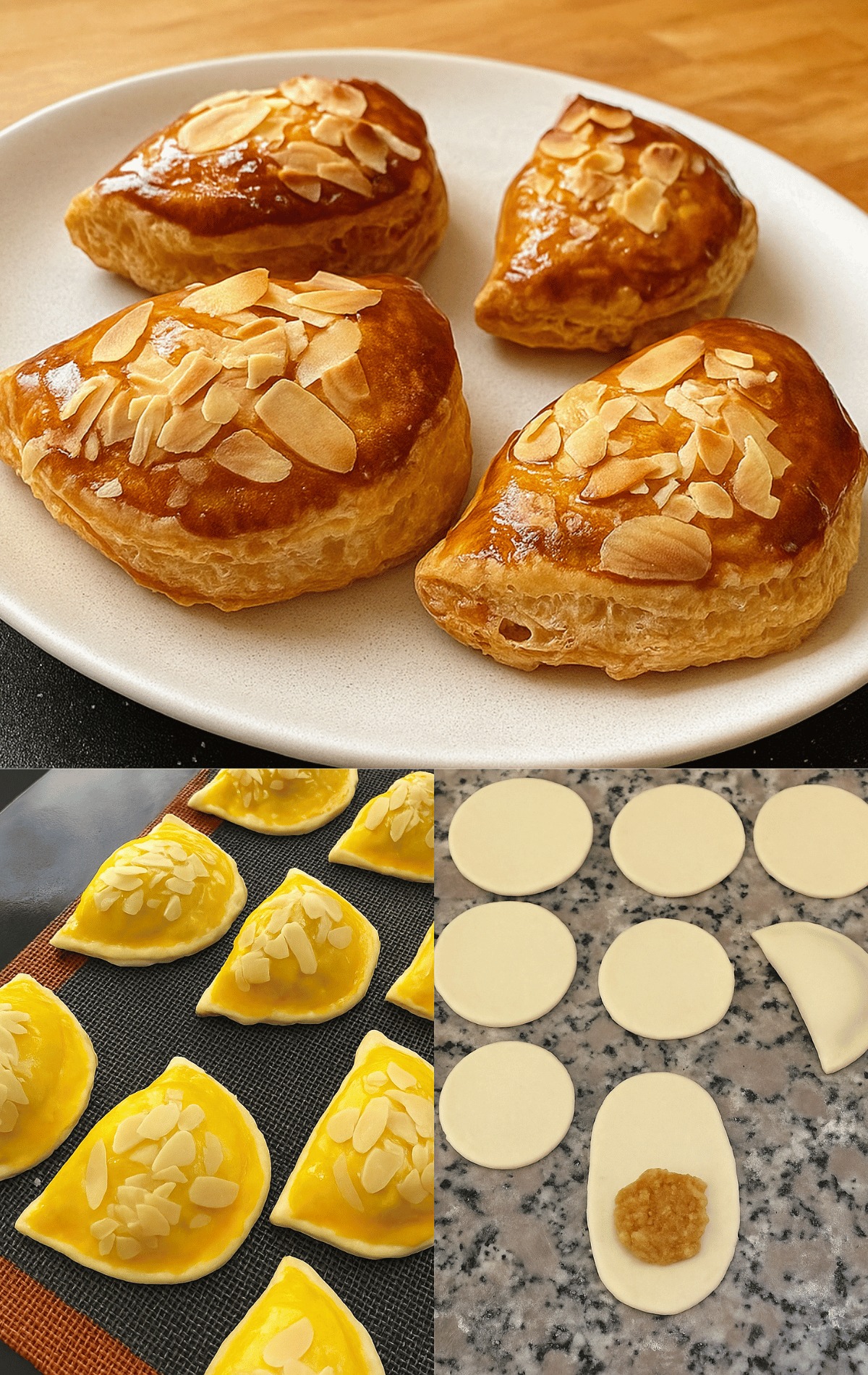 Des chaussons croustillants et dorés, garnis d’une crème d’amande onctueuse — un pur délice pour le petit-déjeuner ou le goûter 🤤✨